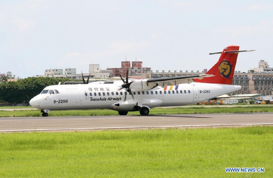 This file photo taken in June, 2009 shows the ATR-72 airliner of Taiwan's TransAsia Airways which had an emergency landing in Penghu, southeast China's Taiwan, on July 23, 2014. The airliner which carried 54 passengers and four crew members was flying from Kaohsiung to Penghu, where it made an emergency landing, on Wednesday. (Xinhua)