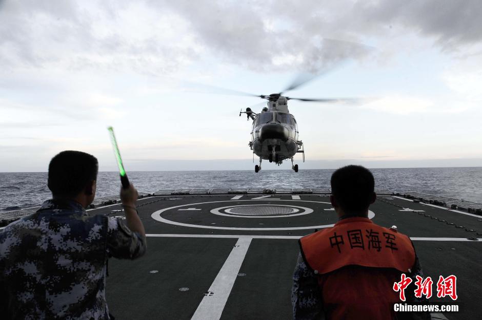 Chinese ship-borne helicopters participate in multinational landing operations during the Rim of the Pacific Exercise (RIMPAC) of 2014. (Photo/Chinanews.com)