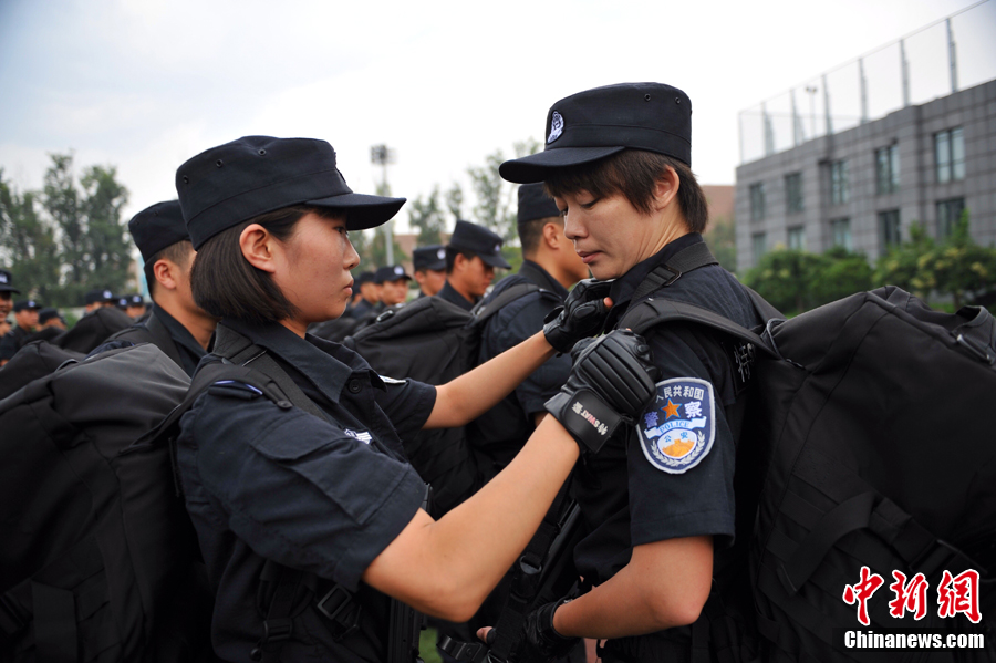 On July 24, Beijing Public Security Bureau holds anti-terrorism exercise to further test and improve the anti-terrorism capabilities. Police helicopters were used in the drill to transmit images. (CNS Photo)