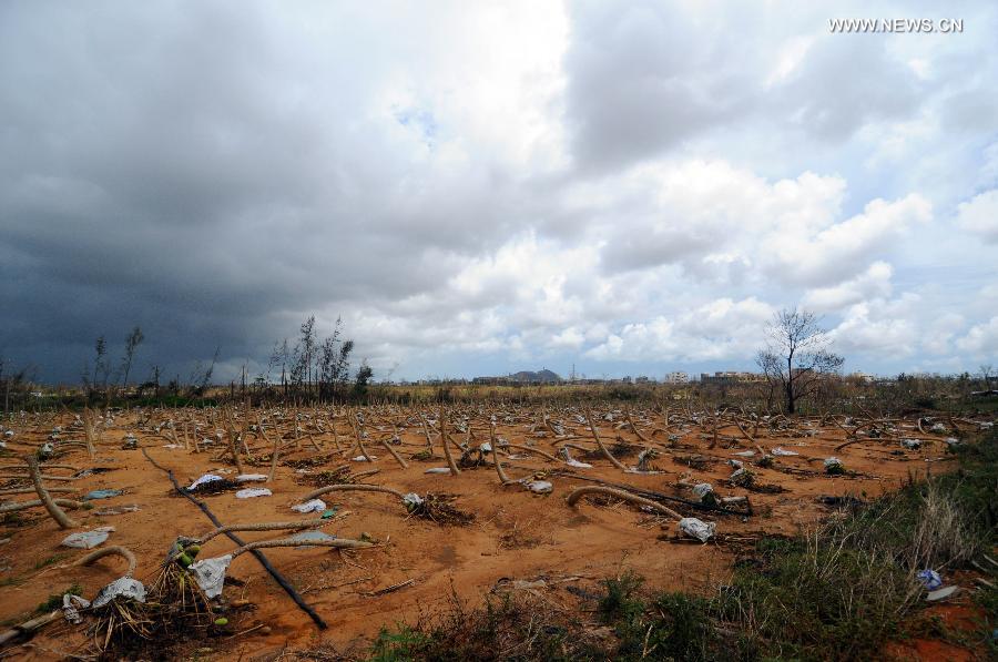 Fruit trees toppled by Typhoon Rammasun lie in an orchard in Wengtian Town of Wenchang, south China's Hainan Province, July 27, 2014. Typhoon Rammasun, which made its landfall in Wenchang on July 18, was the strongest typhoon that hit south China in four decades. According to China's Ministry of Civil Affairs, the super typhoon has killed 62 people as of Friday, with another 21 still missing. (Xinhua/Wei Hua)