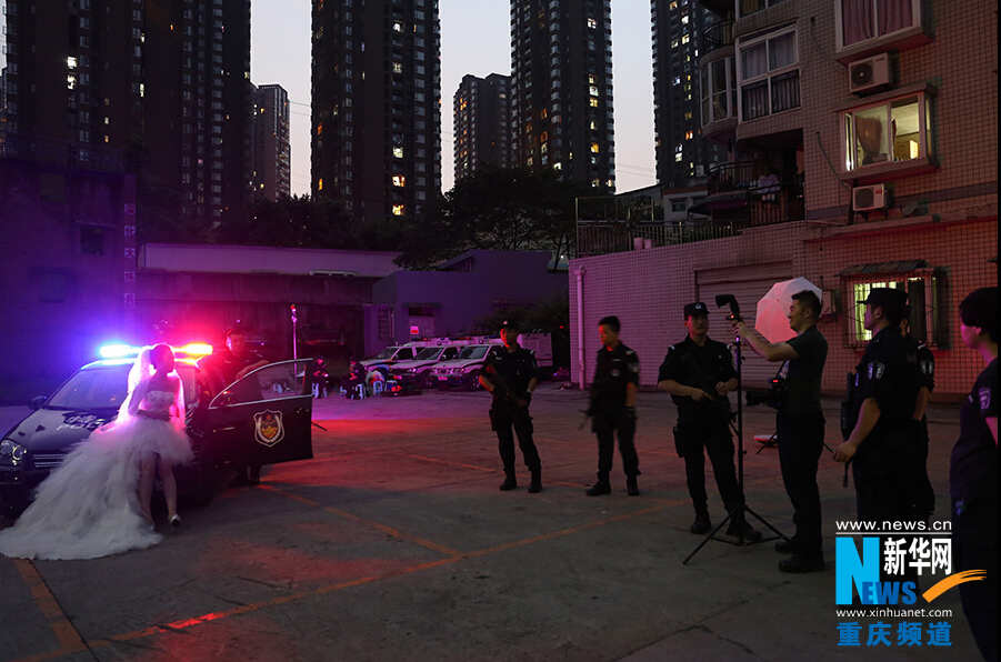 A member of the Chongqing Armed Police Corpssnapped some rather incredible wedding photos with his bride-to-be at a SWAT training center. (Photo/Xinhua News Agency)