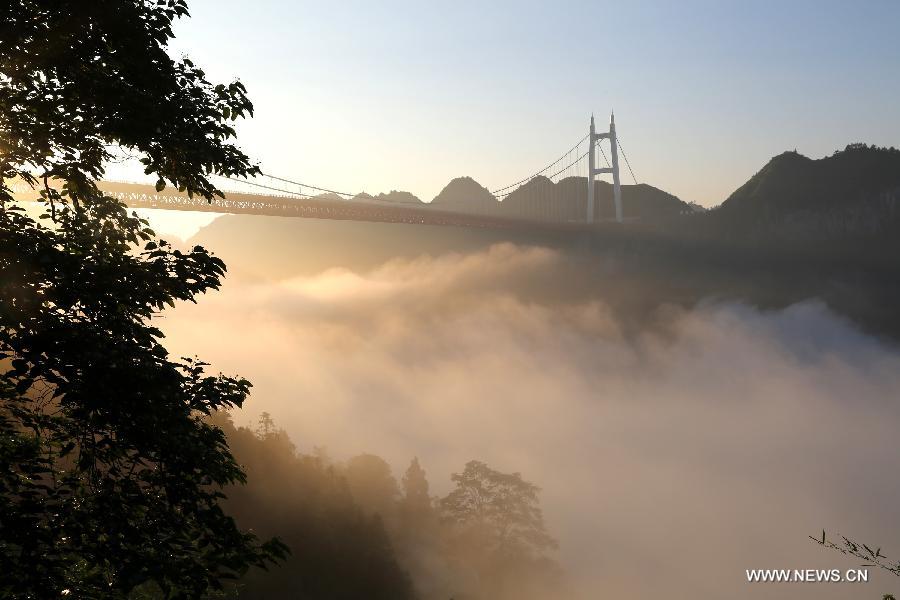 Photo taken on July 29, 2014 shows the scenery of Aizhai grand canyon in Jishou, central China's Hunan Province, July 29, 2014. (Xinhua/Peng Biao)