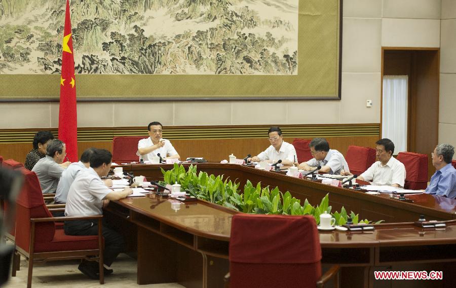 | Chinese Premier Li Keqiang (C), also a member of the Standing Committee of the Political Bureau of the Communist Party of China (CPC) Central Committee, presides over a work conference on reinvigorating the outmoded industrial bases in China's northeast and other regions, in Beijing, capital of China, July 31, 2014. Chinese Vice Premier Zhang Gaoli, also a member of the Standing Committee of the Political Bureau of the CPC Central Committee, attended the conference. (Xinhua/Xie Huanchi) |