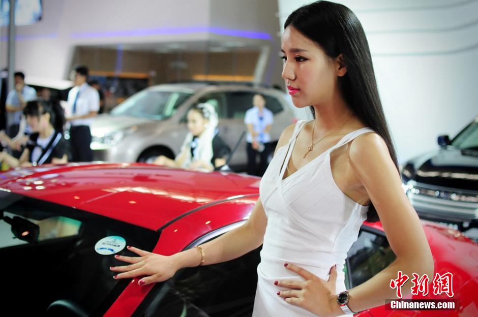 Photo taken on July 30 shows the beautiful model at Xinjiang International Automobile Exhibition in northwest China's Xinjiang Uygur Autonomous Region. (Photo/CNS)
