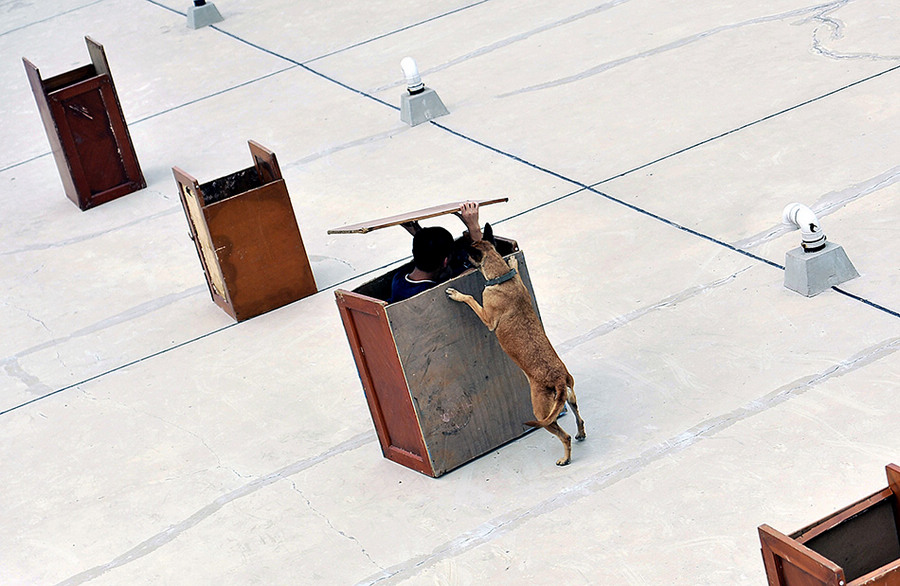 A police dog receives basic training on July 31, 2014. (Photo: Xinhua News Agency)