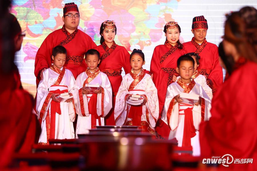 A total of 18 newlyweds attend a group wedding ceremony in Xi'an, capital of northwest China's Shaanxi province on Friday, as the "Qixi" festival approaches. They got married during the wedding wearing Han Chinese clothing, the costume of Han People in China, for the traditional service. "Qixi", marked on the seventh day of the seventh lunar month,is a traditional festival regarded as the Chinese Valentine's Day. (Cnwest Photo)