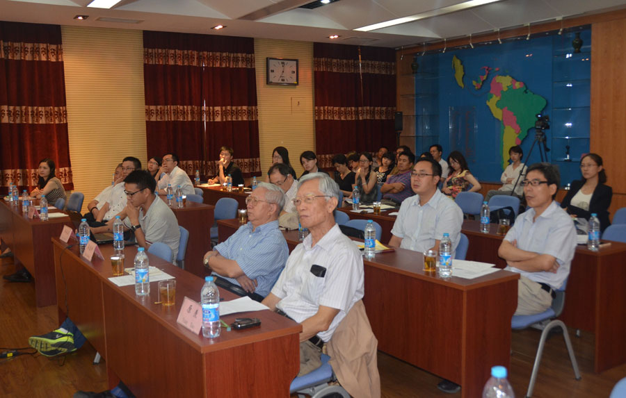 Former Chinese ambassadors to Brazil Yuan Tao (1st right front row) and Shen Yun’ao (2nd right front row) attend the symposium Thursday. (Photo/People’s Daily Online)