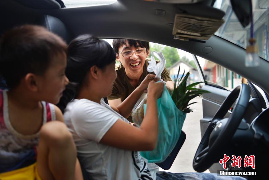 | Zhao delivers the fruits to customers in Zouping county, east China's Shandong province, July 29, 2014. (CNS Photo) |