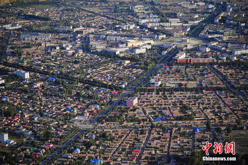 | Constructed according to the "Bagua", or the eight trigrams used in Taoist cosmology to represent the fundamental principles of reality, Tekes County of northwest China's Xinjiang Uygur Autonomous Region is the biggest "Bagua" city in the world with a mazy street layout. Since August 3, 2014, tourists can enjoy the magnificent view of the city from the air. (Liu Xin/Chinanews) |