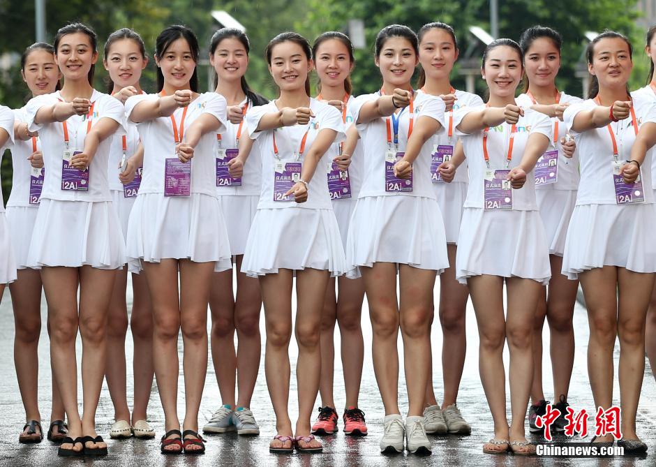 | Braving the scorching heat, 205 guides selected from local universities and high schools devote themselves to the training for the opening and closing ceremonies of the 2nd Youth Olympic Games at the Olympic Sports Centre in Nanjing on August 1, 2014. (CNS/Yang Bo) |