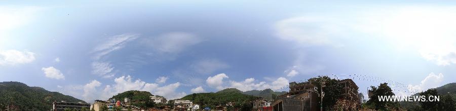 Panoramic photo taken on Aug. 5, 2014 shows quake-hit Longtoushan Town of Ludian County, southwest China's Yunnan Province, Aug. 5, 2014. At least 398 people have been killed after a 6.5-magnitude earthquake rattled the province Sunday afternoon. The epicenter of the strong quake is in Longtoushan Town. (Xinhua/Xing Guangli)