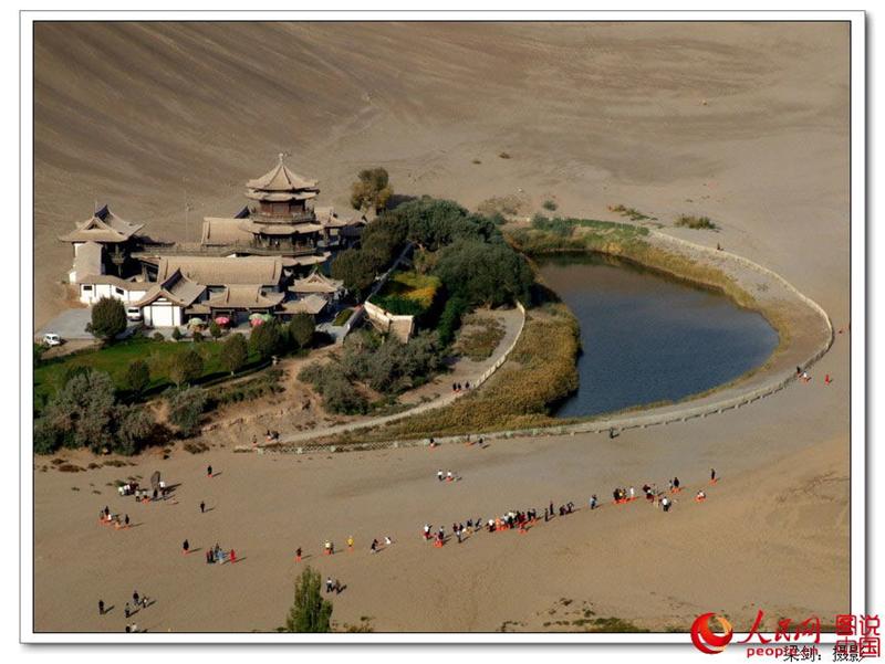 Located five kilometers south of Dunhuang City in Gansu, the Mingsha Mountain and the Crescent Moon Spring Scenic Spot is famous across the whole world for the “coexistence of mountain and spring, sand and water”. It is appraised as a “Unique Scenery beyond the Great Wall” and listed as a National Key Tourist Attraction of the People's Republic of China in 1994. The natural beauty of Mingsha Mountain and the Crescent Moon Spring Scenic Spot echoes the artistic treasures of the Mogao Caves. The scenic spot has become a tourist resort attractive to people across the world.(people.cn/Liang Jian)