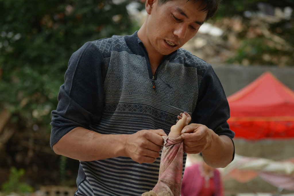 Mao changed clothes for his son as he bid farewell to him. (youth.cn/ Wang Fei)
