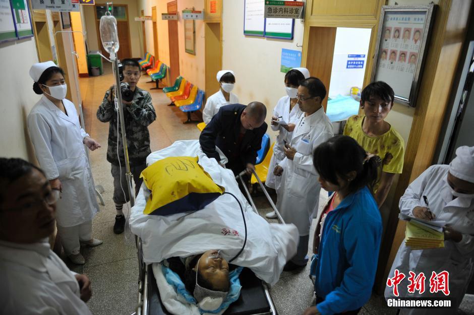 The wounded is treated in hospital on August 4, 2014. (Chinanews/Liu Ranyang)