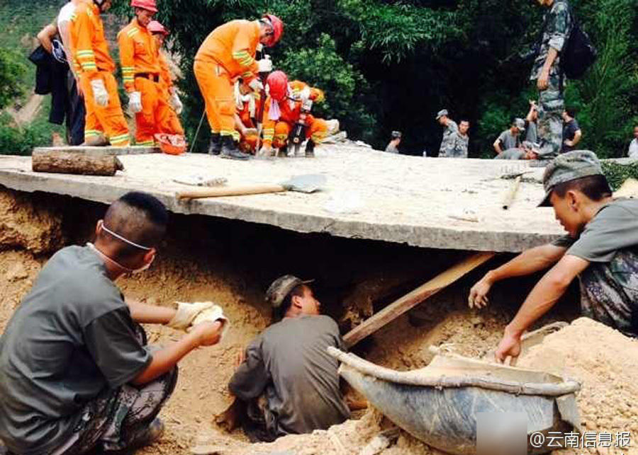 The rescuers dig a hole at 3:03 p.m. on August 5, 2014. (Photo/ynxxb.com)