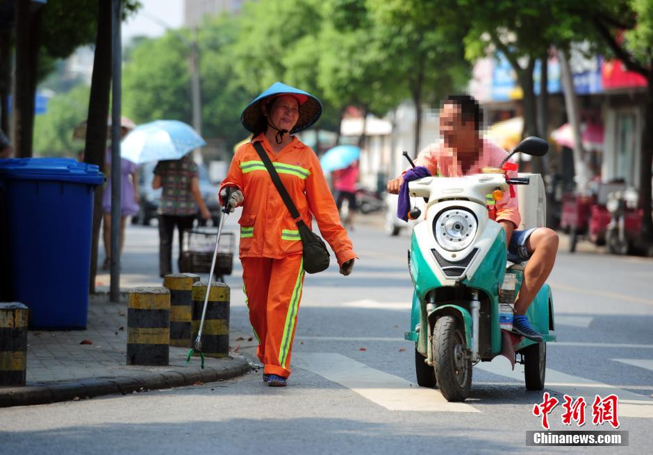 Chen Suozhen, a sanitation worker is working in Wuhan August 5th, 2014.