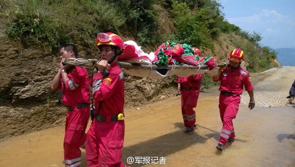 Thirteen members of the China International Search & Rescue Team rescue a severely wounded woman around 20 kilometers away from the epicenter of the Yunnan earthquake. (JZ.81.CN)