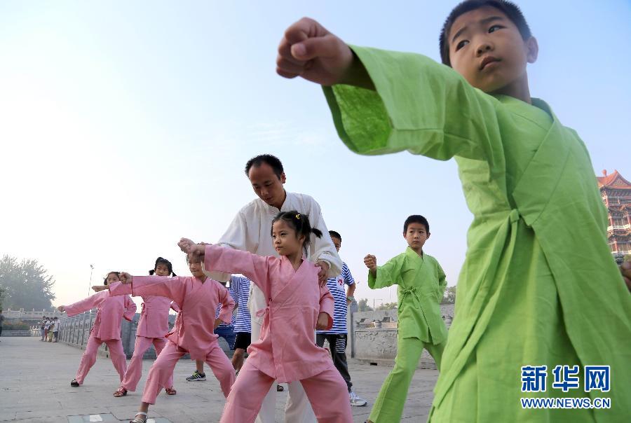 A teacher teaches children how to practice. (Xinhua/Fu Xinchun)