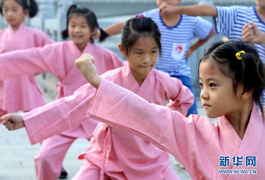 Children in the summer camp practice Eight Extremes Quan, a sort of traditional Chinese exercise. (Xinhua/Fu Xinchun)