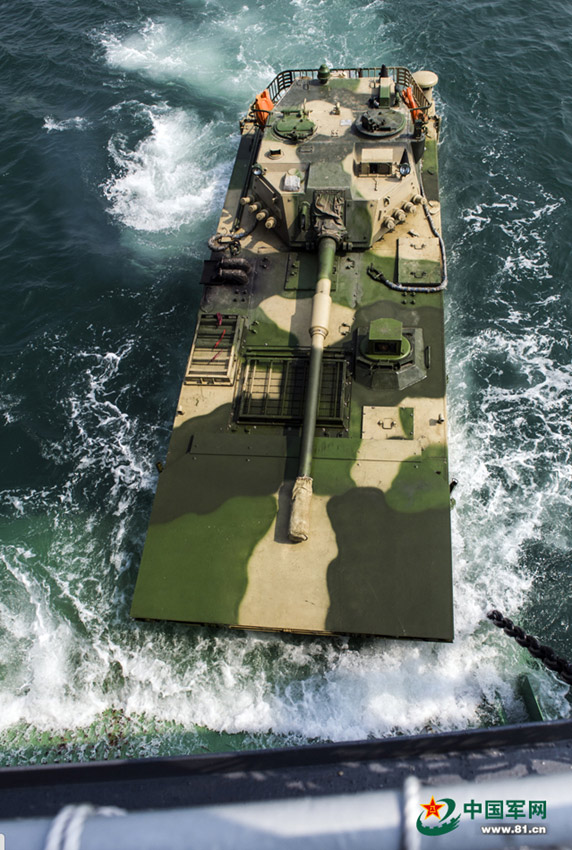 On August 3, 2014, an amphibious armored vehicle unit of Nanjing Military Region successfully conducted an all-floating loading and beach landing drill in East China Sea. (www.81.cn/Jiang Jiangao)