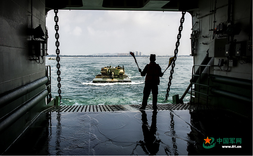 On August 3, 2014, an amphibious armored vehicle unit of Nanjing Military Region successfully conducted an all-floating loading and beach landing drill in East China Sea. (www.81.cn/Jiang Jiangao)