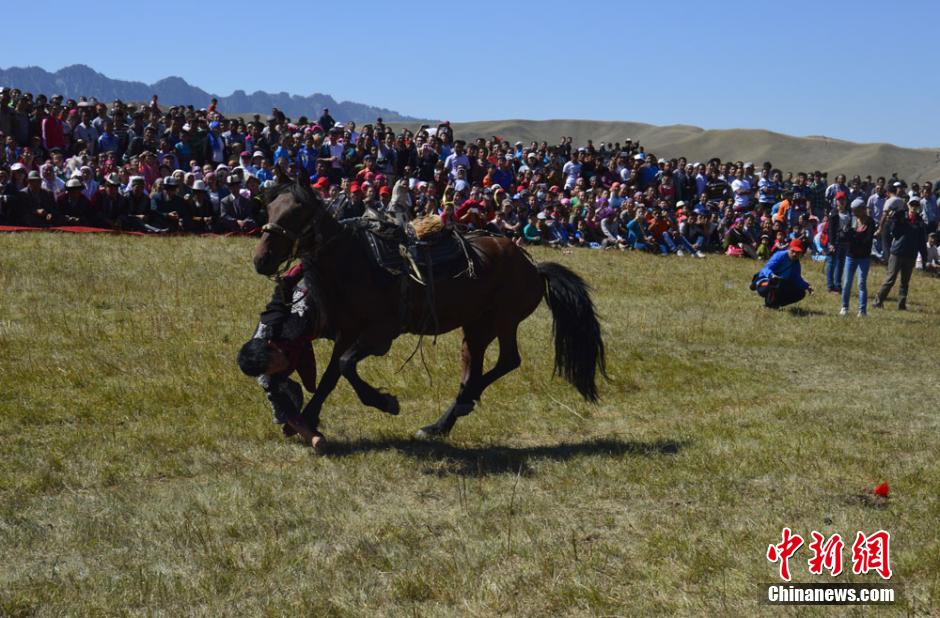 A man shows his equestrian skills to travellers. (CNS/Mu Zhongqing)