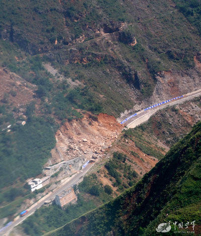 Hundreds of aftershocks created new landslides incessantly, blocking the road again.(Photo/KJ.81.CN)