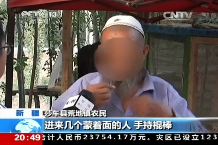 An old man recalled: “Two cars stopped in front of my door and several masked men with sticks in hands came to me. They asked me to go with them, but I stood there and stopped them from entering my house.”(Screenshot of CCTV)