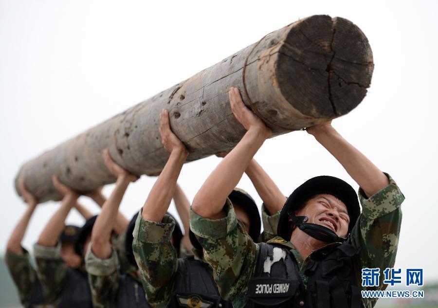The armed soldiers forge their skills of unarmed strike in the heat.(Xinhua/Li Ke)