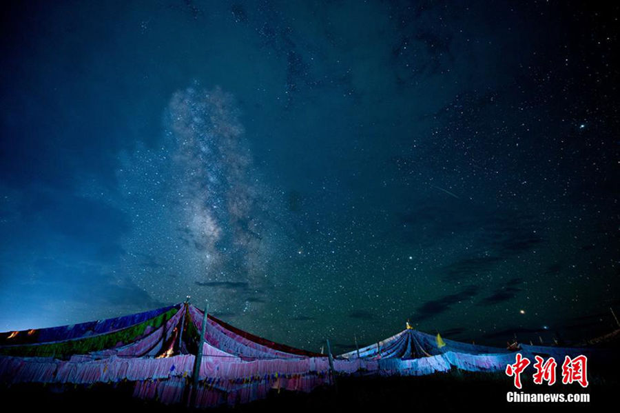 Waqie pagoda forest combined with countless prayer flags form the most fascinating scenery in a summer night in Hongyuan County of Aba (Ngawa) Autonomous Prefecture, Sichuan province. (Chinanews/Yang Yaguang)