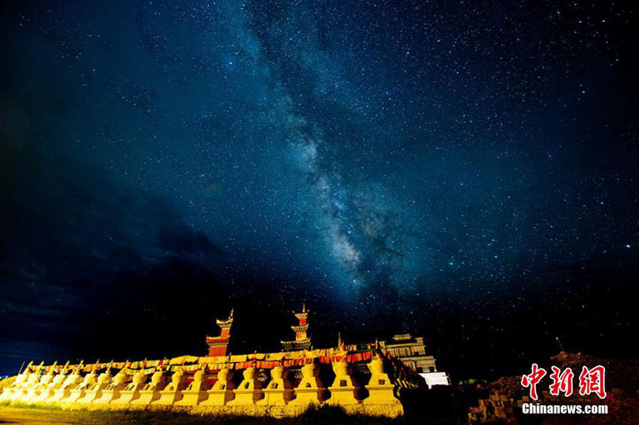 Waqie pagoda forest combined with countless prayer flags form the most fascinating scenery in a summer night in Hongyuan County of Aba (Ngawa) Autonomous Prefecture, Sichuan province. (Chinanews/Yang Yaguang)
