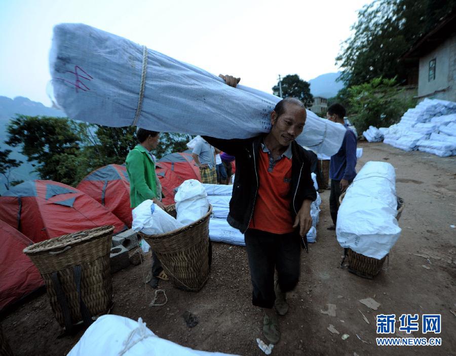 The victims receive relief materials in Weigu Village of Qiaojia County, southwest China's Yunnan Province. (Xinhua/Tao Liang)