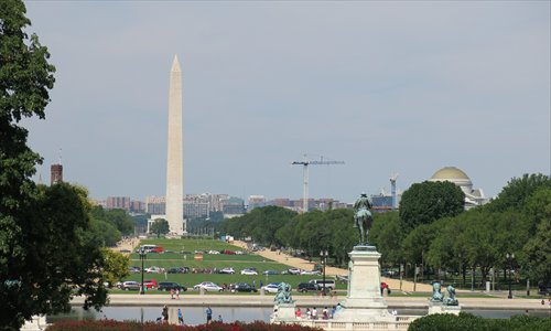 The Washington Monument is seen from Capitol Hill in Washington DC. (Photo/Global Times)