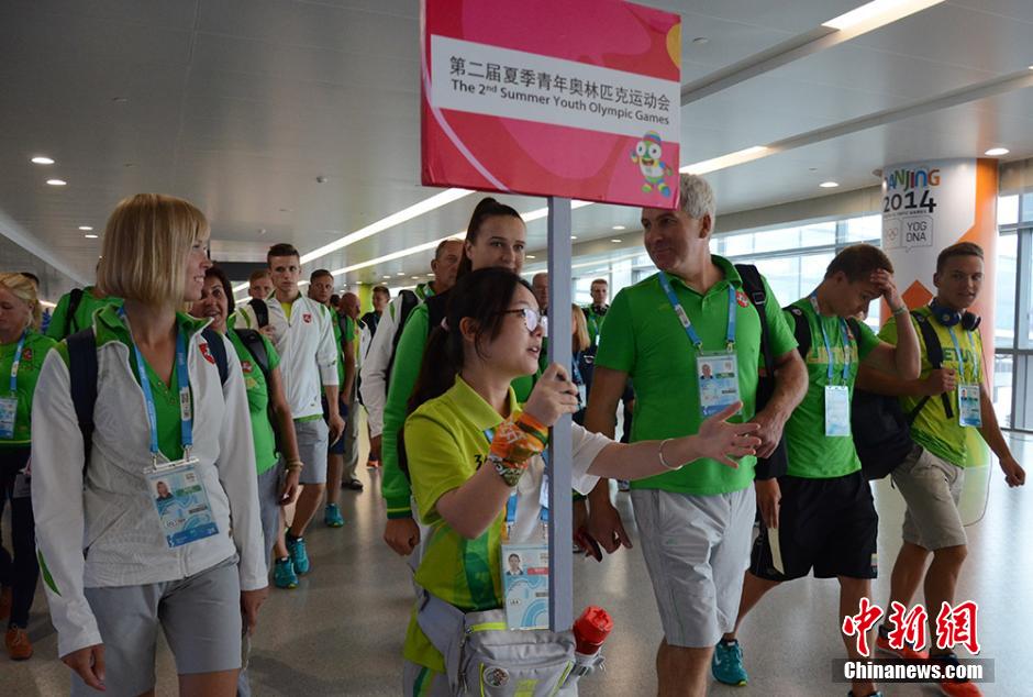 Volunteers from Hohai University and Nanjing University got busy for the 2nd Summer Youth Olympic Games on Aug. 13, 2014. At Nanjing International Airport, volunteers confirmed airline information, waited for the guests at the arrival gates, and guided them to Youth Olympic Village or authorized hotels.