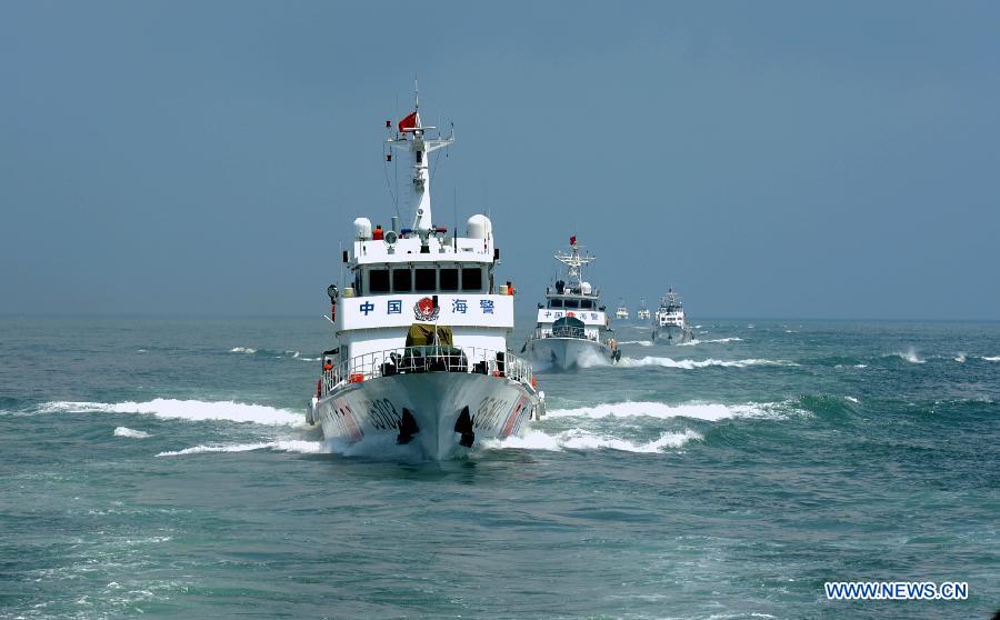 Naval vessels of Fujian Coast Guard Forces take part in an offshore drill at the Meizhou Bay, southeast China's Fujian Province, Aug. 16, 2014. (Xinhua/Zhang Guojun)