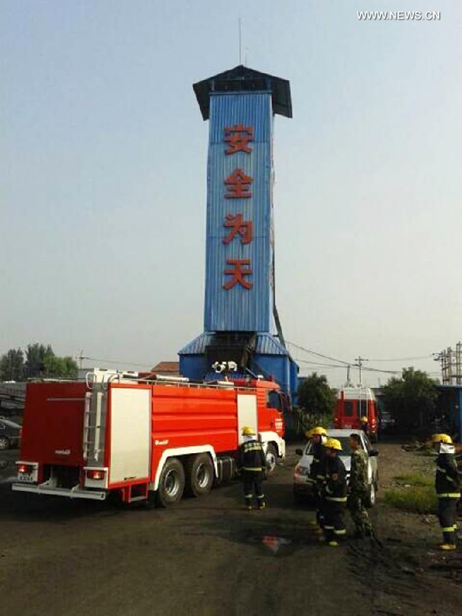 Photo taken with a mobile phone shows rescuers at the accident site after gas outburst occurred in Dongfang Coal Mine in Xiejiaji District of Huainan City, east China's Anhui Province, Aug. 19, 2014. More than 20 people have been missing in the accident which happened in the early morning on Tuesday. (Xinhua)