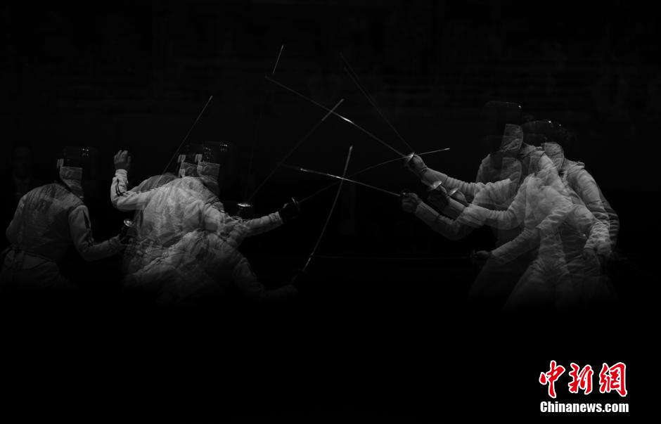 Sabrina Massialas (R) from the U.S. beats Karin Miyawaki (L) from Japan at the Gold Medal Bout of Women's Foil Individual at YOG on Aug. 17, 2014. (CNS/Hou Yu)