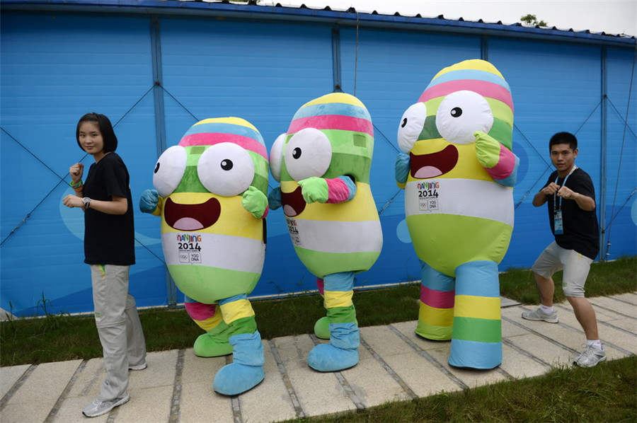 This summer, Zhang Liu and his classmates were selected to play the mascot called “Lele” for 2014 Nanjing summer Youth Olympic Games. All of them are skilled at taekwondo.They have to wear heavy costumes when they play the mascots “Lele”. These mascots bring joy to the competition venue.