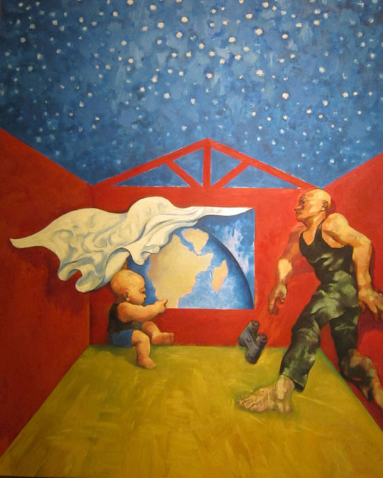 Painting Small Earth by Shi Lei is on display at the National Art Museum of China in Beijing, Aug 16, 2014. [Photo/CRI Online]