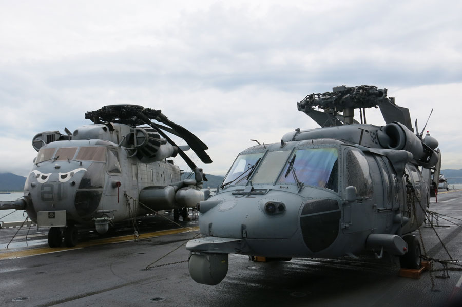 CH-53E Super Stallion(left) and MH-60S Pave Hawk (right) onboard [Photo: CRIENGLISH.com]