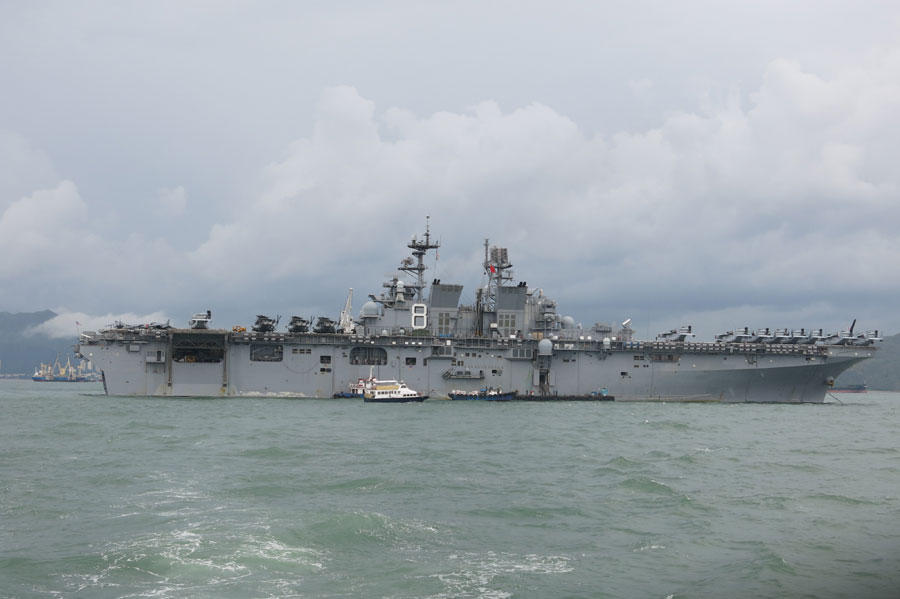Makin Island is the flagship of the Makin Island Amphibious Ready Group (ARG), and is joined in Hong Kong by amphibious transport dock ship USS San Diego (LPD 22) and dock landing ship USS Comstock (LSD 45).