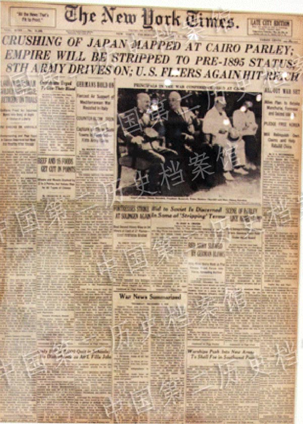 The Cairo Declaration in the New York Times on December 2, 1943. (Photo/Second Historical Archives of China)