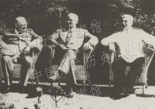 Potsdam Conference in July 1945. (from left to right) Winston Churchill, Franklin D. Roosevelt and Joseph Stalin. (Photo/Second Historical Archives of China)