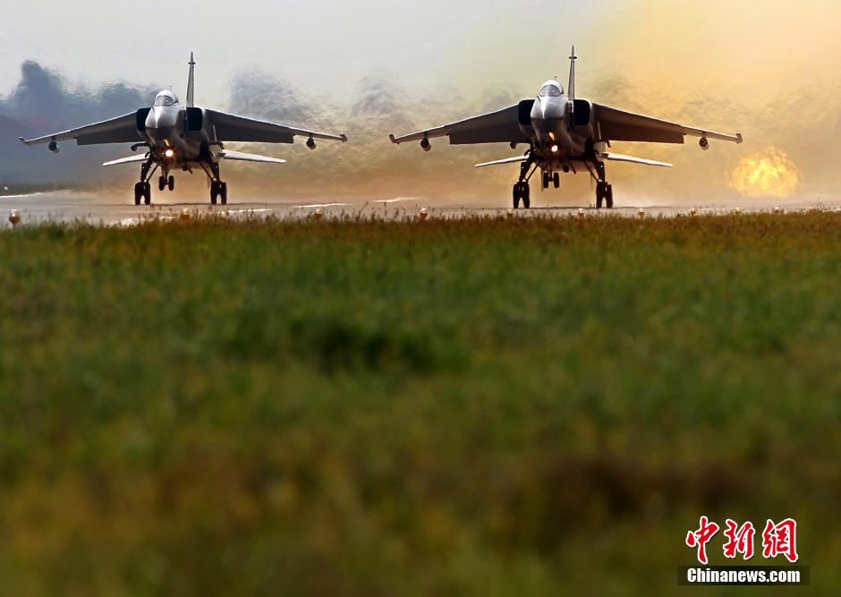 The fighter planes of Chinese Air Force participate in training for "Peace Mission-2014", a joint anti-terrorism drill, in north China on Aug. 20, 2014. Chinese Air Force will send 23 fighter planes in seven type including F-10, F-11, FB-7, KJ-200 and paratroopers vehicles to participate in the drill. (CNS/Song Jihe)