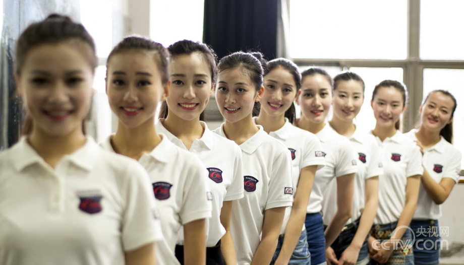 College girls selected as the guides at the opening ceremony of YOG (Youth Olympic Games) receive training in Nanjing. They became the beautiful landscape during the event. (Photo/CNTV)