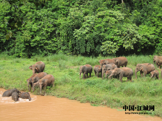 Wild Asian elephants play in the Manlao River of Jiangcheng County (gcw.gov.cn)
