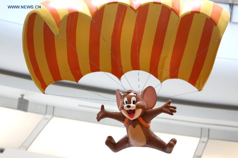 Photo taken on Aug. 22, 2014 shows models of Metro-Goldwyn-Mayer cartoon characters Tom and Jerry outside a shopping mall in Shenyang, capital of northeast China's Liaoning Province, Aug. 22, 2014. (Xinhua/Yao Jianfeng)