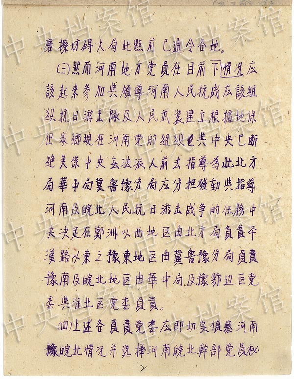 The Administration)he Secretariat of the Central Committee of the Communist Party of China gave an instruction on expanding military presence in Henan province in May 1944. (Photo/China's State Archive)
