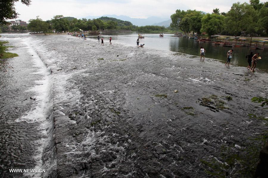 Tourists go sightseeing at the Ling Qu Canal in Xing'an county, southwest China's Guangxi Zhuang Autonomous Region, Aug. 23, 2014. Built in the Year 214 BC, the Ling Qu Canal is one of the oldest canals in the world which links the Xiangjiang River and Guijiang River to form a north south waterway of the region. (Xinhua/Wang Zichuang)