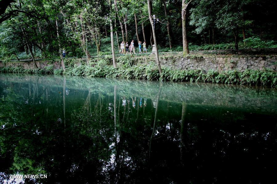 Tourists go sightseeing at the Ling Qu Canal in Xing'an county, southwest China's Guangxi Zhuang Autonomous Region, Aug. 23, 2014. Built in the Year 214 BC, the Ling Qu Canal is one of the oldest canals in the world which links the Xiangjiang River and Guijiang River to form a north south waterway of the region. (Xinhua/Wang Zichuang)